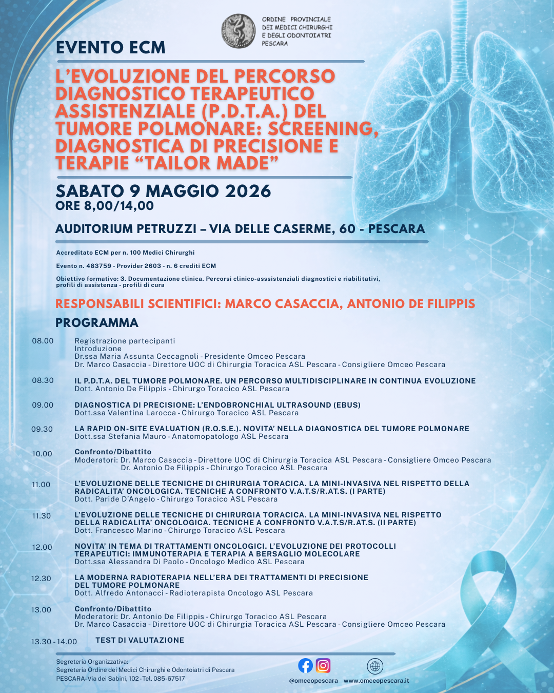 L'EVOLUZIONE DEL PERCORSO DIAGNOSTICO TERAPEUTICO ASSISTENZIALE (P.D.T.A.) DEL TUMORE POLMONARE: SCREENING, DIAGNOSTICA DI PRECISIONE E TERAPIE "TAILOR MADE"